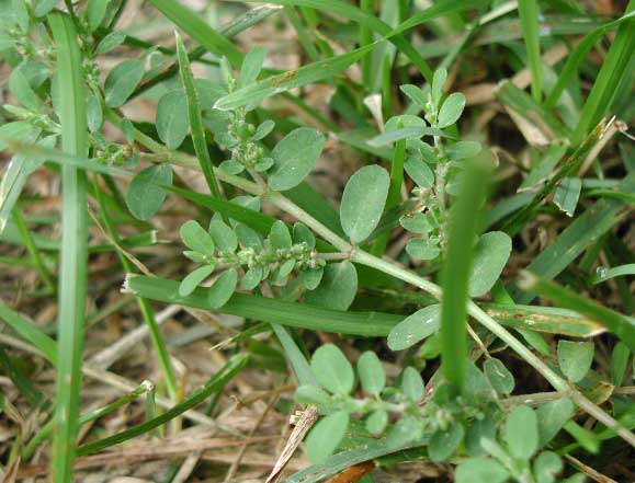 each leaf. Spurge creates seeds below the mower's blades so getting